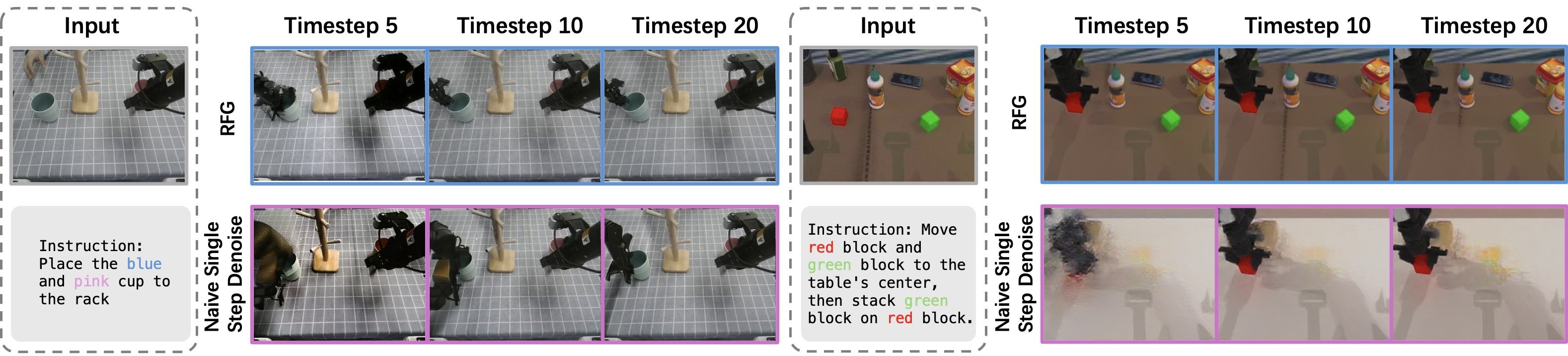 To address the high latency in combining visual generation with control, we introduce Residual Flow Guidance (RFG). Instead of generating future frames from scratch, RFG conditions on the current observation as a strong structural prior and performs single-step denoising to predict the residual change toward the next keyframe. RFG provides a lightweight predictive visual representation that captures task-relevant dynamics with minimal overhead. This substantially reduces the computational cost of foresight while preserving its utility for action generation.